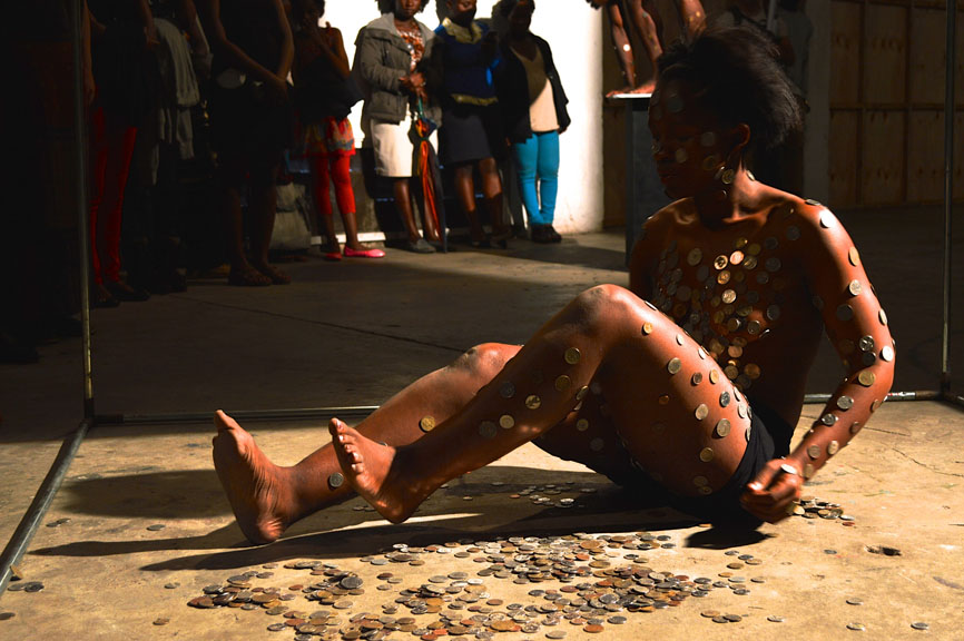 While creating exchange within africa the lab also involves international collaboration. The latest edition 'Performance Lab #7' includes residencies by japanese/american artist, Takahiro Yamamoto with the project 'Conversations'. Light designer Carrie Wood from new york collaborates with Opiyo Okach and leads design process for choreographers. Lab #7 also hosts south african choreographer Boyzie Cekwana as well as dancers Jabu Siphika and Sifiso Khumalo from durban who engage in process for Alacoque Ntome's 'Coins', Juliette Achieng's 'Mis-represent', Adam Chienjo's 'I am reading from a paper with nothing written on' and Opiyo Okach's 'What flag would it be if your body was a country'.